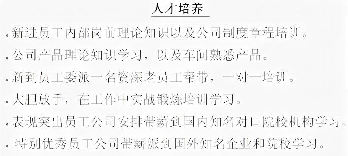 · 表现突出员工公司安排带薪到国内知名对口院校机构学习。